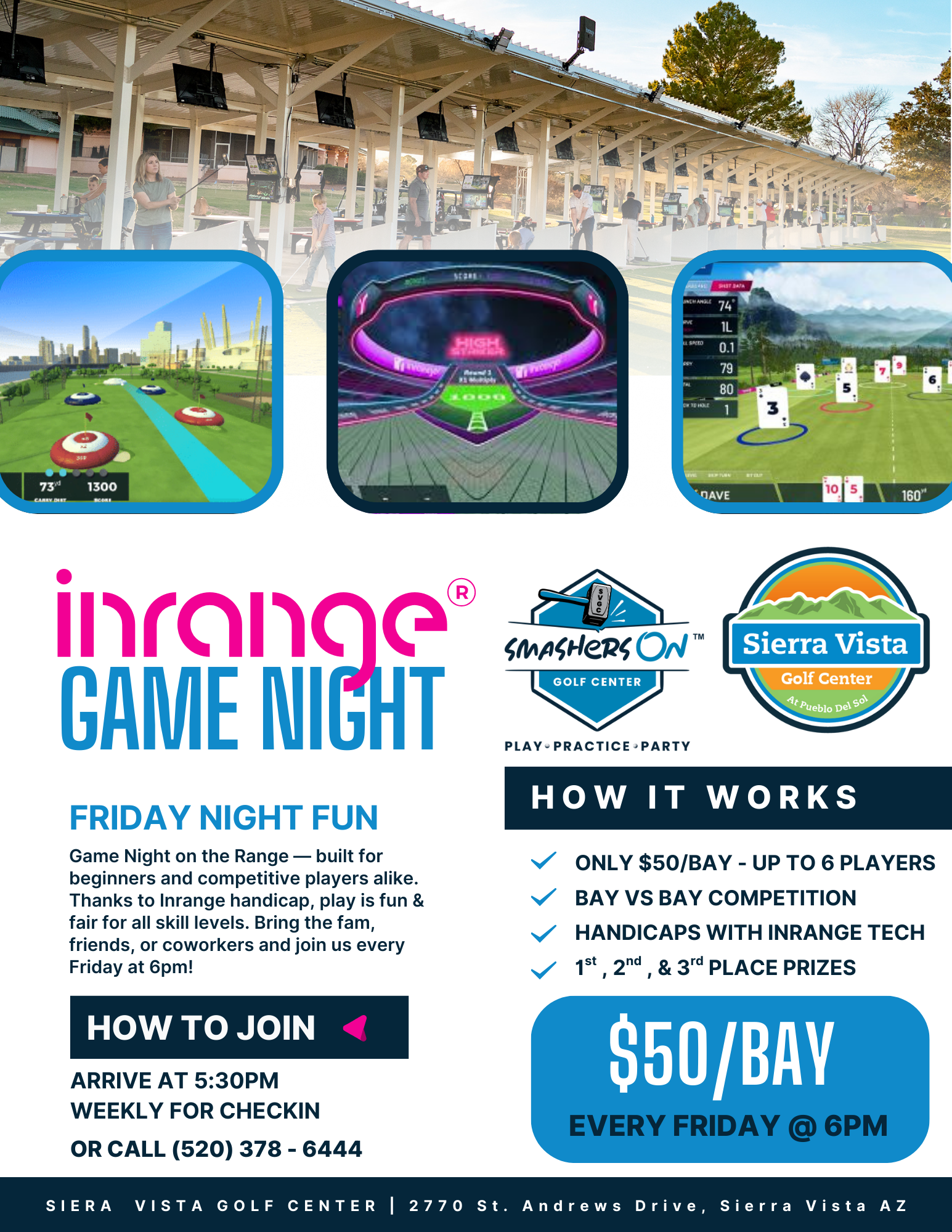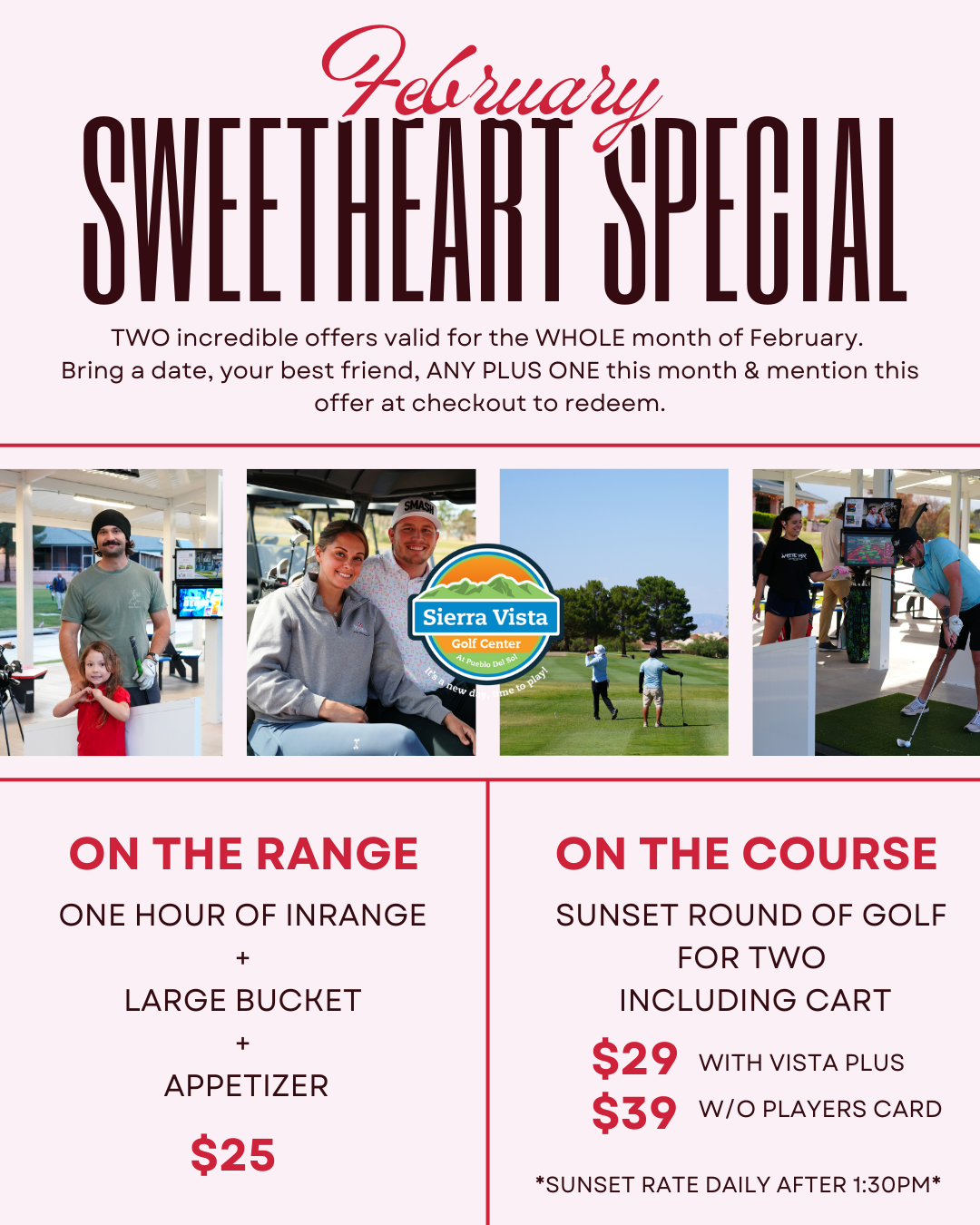 Sierra Vista Golf Center offers everything you need to create an unforgettable experience. With stunning views, delicious food, and flexible, customizable packages, we’ve got you covered. Our dedicated team will handle all the details so you can relax and enjoy your event.